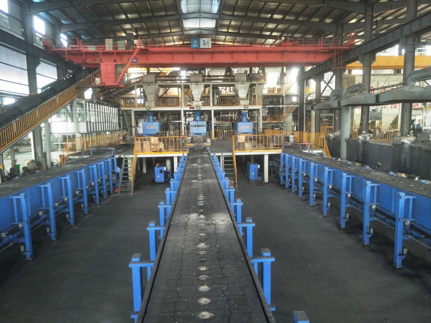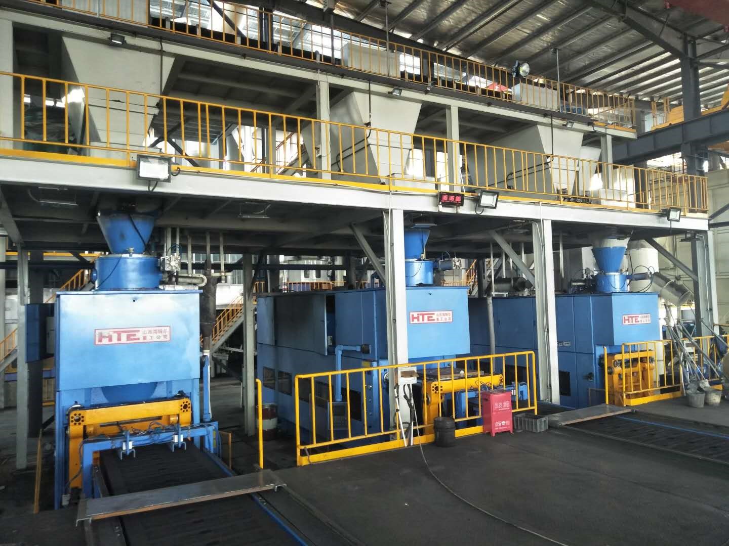 我公司开发生产的H-A4110C-I-B、H-A419C-I-B型垂直造型线在江苏博能交通科技有限公司顺利投产,3条垂直造型线浇注段采用18米同步托持机构,皮带冷却段采用20米皮带冷却。
